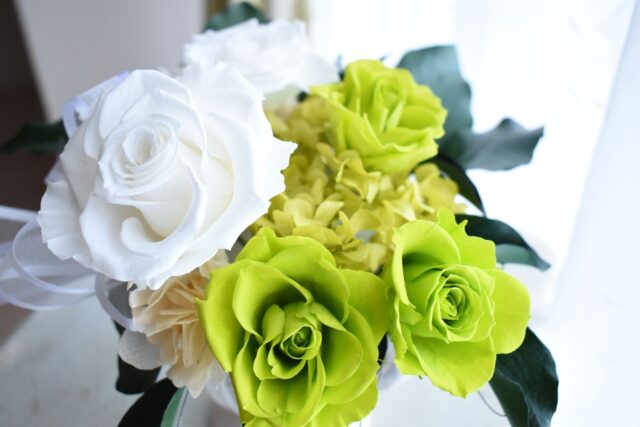 ご結婚のお祝いにプリザーブドフラワーを送らせていただきました