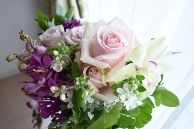 来年、お嬢様がご結婚されるとのことで花束ショートを作られました。